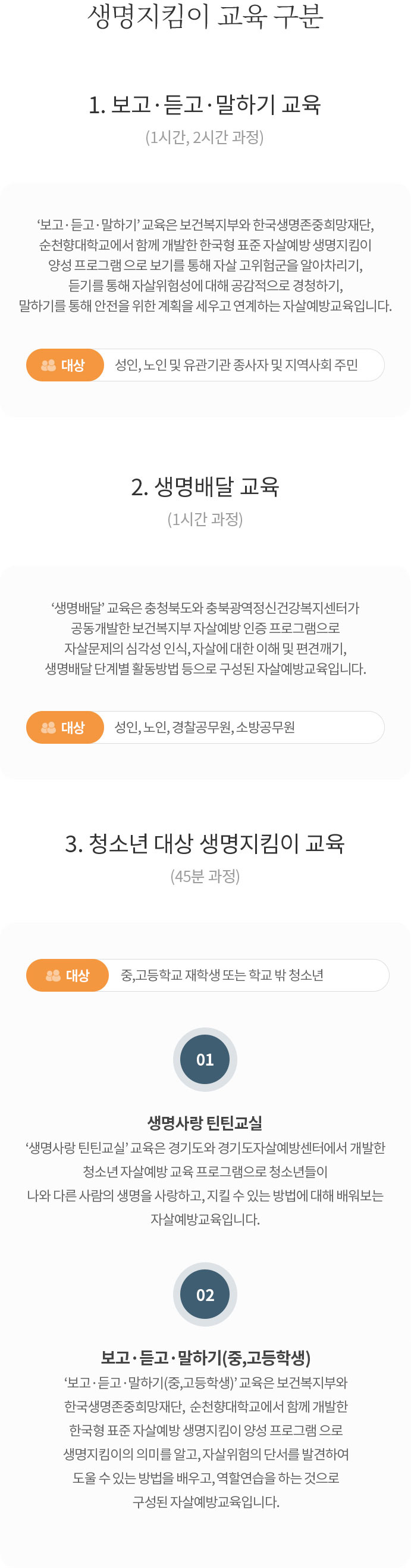 1. 보고 듣고 말하기 교육 및 자살예방 게이트키퍼 교육